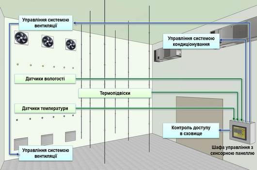 Для кожного сховища на основі перевірених типових рішень проектуєтья своя індивідуальна система контролю та підтримання параметрів середовища у відповідності до конкретних вимог та потреб Замовника.